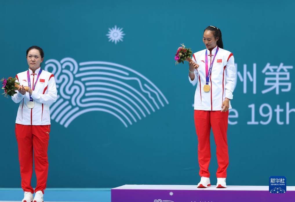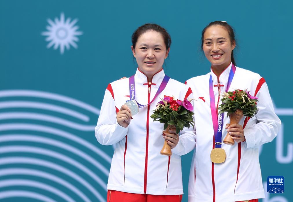 9月29日,冠军中国选手郑钦文(右)与亚军朱琳在颁奖仪式上合影。