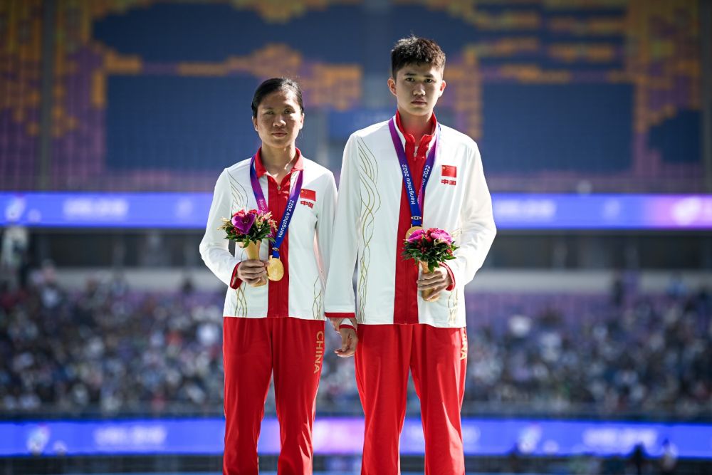 身边的是陈圣明。作为新任领跑员,他与刘翠青合练仅5个月,就帮助后者在杭州首战中以打破赛会纪录的成绩夺冠。