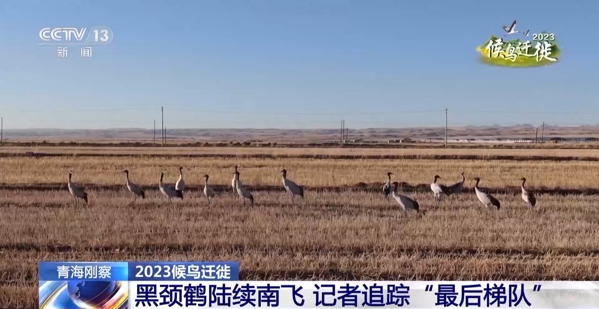 总台记者 刘泽耕:现在大部分的黑颈鹤已经飞往越冬地,而这群黑颈鹤是迁徙种群的最后梯队。它们到底要飞向哪里?迁徙路途是否会顺畅?接下来,我们也将继续追踪这群黑颈鹤的迁徙路线,跟随它们去越冬地。