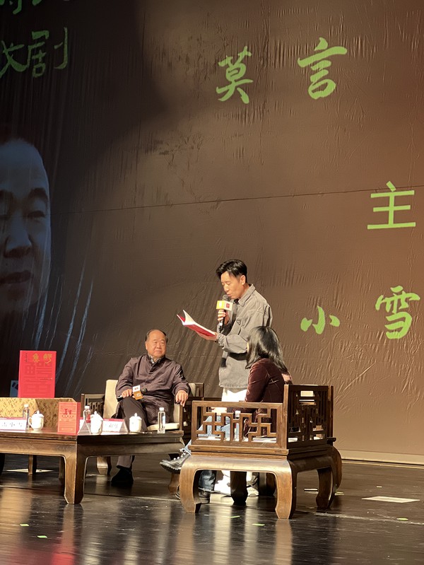 莫言提到,作为一个作家,看到别人阅读自己的小说是比较间接的。但是作为一个剧作家,自己的剧本在舞台上被演绎,观众在下面看,这种满足感、成就感是爆棚的。