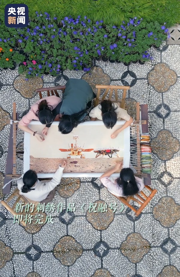 目前,陈英华和学徒在一起制作“祝融号”火星车,这幅新的刺绣作品也即将完成。