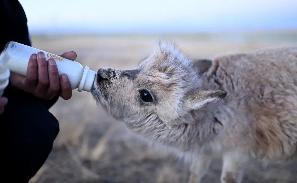 “这三只小家伙都是去年藏羚羊迁徙产仔时,我们从‘藏羚羊大产房’卓乃湖救助回来的,现在它们已经快半岁了,你看它们吃得多香。”才文多杰一边将“流着汗珠”的奶瓶喂给小羊,一边观察着小藏羚羊的身体状况。