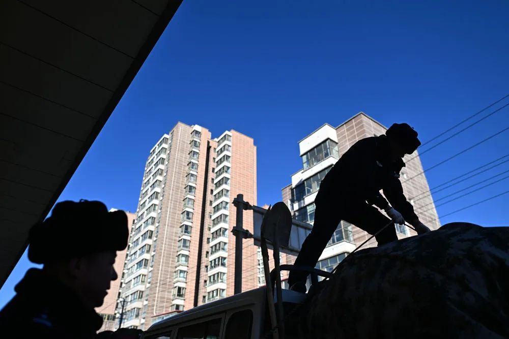 在青海省海西蒙古族藏族自治州格尔木市,可可西里森林公安局两名巡山队员正在装车(1月18日摄)。新华社记者 张宏祥 摄