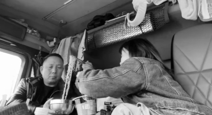 雨含家的大货车里,设有上下铺的床位。休息时,雨含睡上铺,父亲睡下铺。在等待装货或者卸货时,雨含会拉着父亲到周围去转转。“等货、卸货都需要一段时间,我会搜附近的景区、商区,带父亲一起逛逛。”雨含说,父亲辛苦挣钱,却舍不得花,一个人跑车时,不太愿意出去。“有我在就不一样了,我会拉着他去玩,还拉着他下馆子,改善一下伙食。”在雨含的视频里,经常可以看到她和父亲到货运中心外面吃饭,烧鹅饭、米粉……简单的美食两人吃得津津有味。