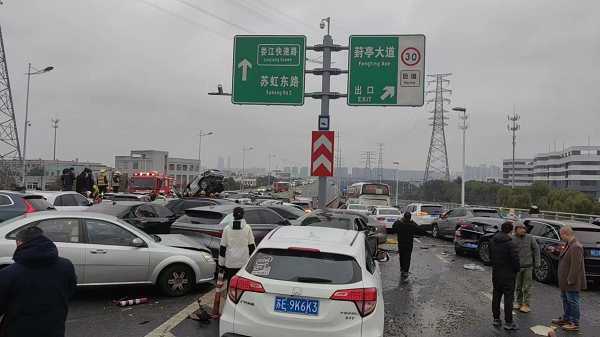责任编辑:李佩蔺苏州工业园区,高架,多车相撞,道路结冰