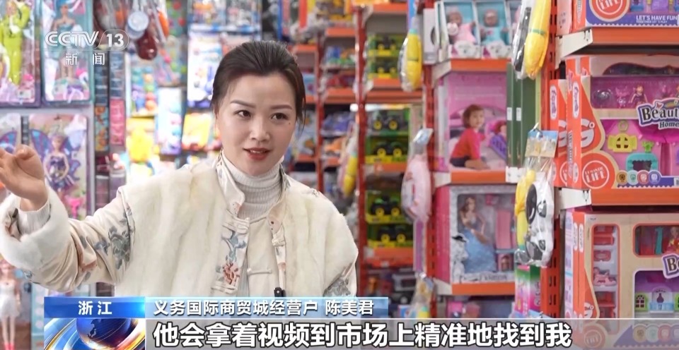 义乌国际商贸城经营户 陈美君:外商在平台里面看到我们自己介绍产品的视频以后,他会拿着视频到市场上精准地找到我。AI语言转换现在对我来说,给我带来的最大的好处就是,让本身不了解我的客户拿着我的视频来找我。