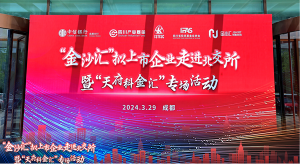 3月29日,由四川省科学技术厅指导,四川省科学技术信息研究所、四川产业基金与中信银行成都分行主办,四川省投资基金业协会与川创投承办的“‘金沙汇’拟上市企业走进北交所暨‘天府科金汇’专场活动”在四川产业基金双创基地举行。来自四川省内中小科技企业、金融机构的60余位嘉宾参加活动。