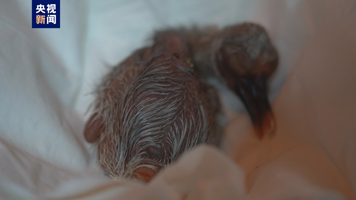 在孵化室里,刚刚出生的朱鹮宝宝扑棱着小翅膀,探着脑袋嗷嗷待哺,不时发出清脆的叫声。据保护区工作人员介绍,今年保护区首批参与人工孵化的朱鹮卵有13枚。受初春低温影响,朱鹮产卵时间均比往年有所推迟。因此,首只朱鹮宝宝的破壳也比往年晚5天左右。经体检称重,这只朱鹮宝宝体重为57.9克,高于朱鹮幼鸟平均值。接下来,这只朱鹮宝宝还要经过40多天的育雏期才算度过“危险期”,完成整个人工繁育过程。