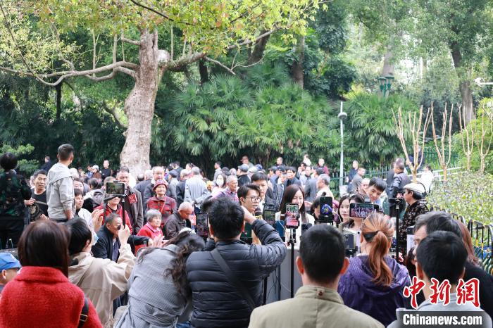 中新社柳州4月11日电 广西“三月三”期间,传说壮族歌仙刘三姐骑鱼升天之地的广西柳州市鱼峰山下,歌声不停,已成为山歌经济的兴起地。大批“网红”山歌手聚集山脚下,架起手机直播对唱山歌,引来线上、线下民众围观。