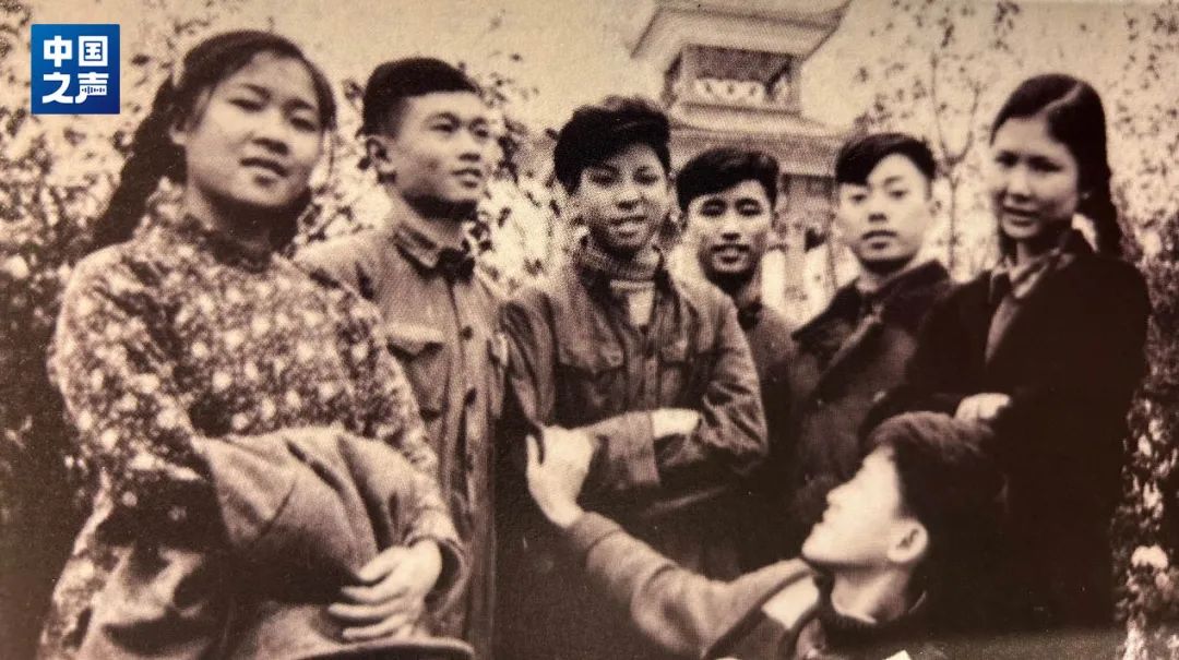 △1958年,王劲梅(右一)与重庆市文艺工作团学生队队员合影