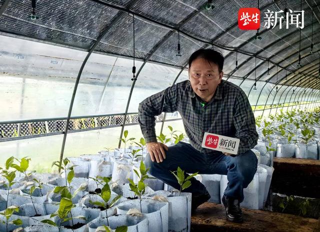 他解释说,碧根果幼苗的根系发达,以往为方便栽种会剪断根,这种裸苗往往导致栽种后的成活率低,而且前两年生长缓慢。他和研究团队探索了几年,发现把碧根果幼苗放在容器里栽培,同时在土壤里搭配适当的营养物质可能起到良好的效果。他告诉记者:“我们现在所有的苗木都是容器苗,极大地提高了成活率。”