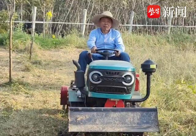 视频里的彭方仁驾驶升降机,拿着电动剪刀修剪碧根果树的枝条,爬上爬下的动作不输年轻人。他头戴草帽、开着旋耕机割草压青,开着电动三轮车拉着一车黄豆在林间穿梭,“反差萌”的样子获得了众多网友点赞。