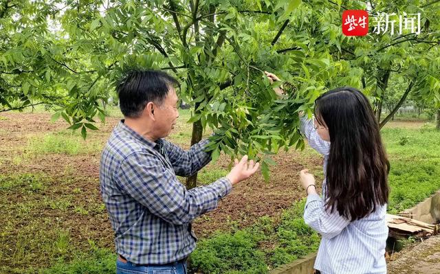 5月11日下午,扬子晚报紫牛新闻记者在镇江句容后白镇山高头见到了彭方仁,他正趁着暴雨间隙在基地的碧根果林里指导硕士生魏璐采样。彭方仁是湖北人,今年62岁,早已满头白发。1981年,他考入南京林业大学,1988年研究生毕业后留校任教,主要研究经济林,有银杏、楸树、碧根果等树种,不到40岁就成了教授。
