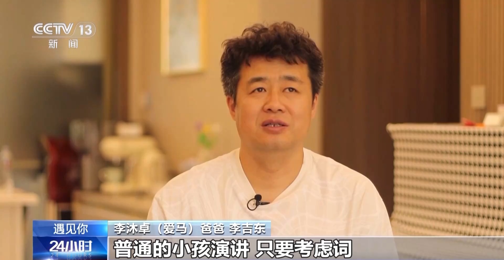 李沐卓的爸爸 李吉东:普通的小孩演讲,只要考虑词,考虑怎么表达感情,就可以了。他需要的是考虑我怎么能不倒,或者怎么样能站好,或者怎么样,他先考虑的是自己的安全。因为他站那儿平衡不好,害怕摔倒。
