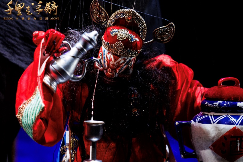 在《千里走单骑》中,台上20多个偶,大部分都是洪金雕自己制作的。其中也不乏一两尊收藏偶,诸如那尊擎着青龙偃月刀的关羽木偶,光华灿烂,极尽精美。