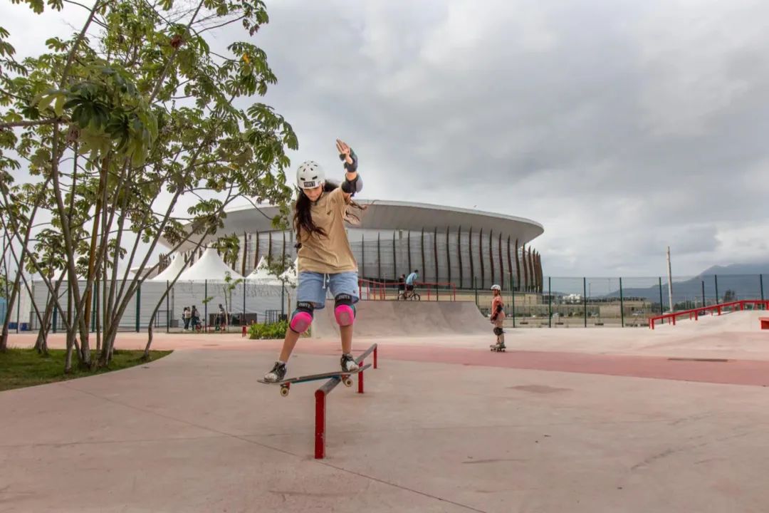 今年5月,巴西里约热内卢的丽塔·李公园正式对公众开放。该公园位于2016年里约奥运会的主赛区巴哈奥林匹克公园的核心区域,总面积13.6万平方米,为市民提供滑板公园、攀岩墙、多功能运动场、儿童玩具区等多项新设施。图为当地年轻人在公园练习滑板。人民日报拉美中心分社 威廉·科埃略·维亚纳摄