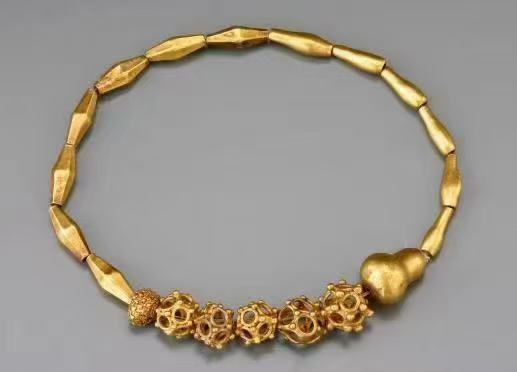 繁荣的海外贸易给当地输入众多的海外商品,直观展示了汉朝人的“海淘”购物车里都装了怎样的宝贝,“有琉璃、玛瑙、水晶、绿松石、海蓝宝石、琥珀,还有金花球,也叫十二面金珠,这种金花球的焊珠工艺其实早在5000年以前(西域)就已经盛行了,地中海、波斯湾、印度洋、南海沿海国家地区都分别有出土,但在内陆是非常少见的,所以非常明确地反映出金花球的这种工艺是由西方往东方传播。”廉世明说。