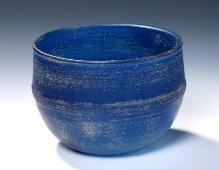 深蓝色玻璃杯。