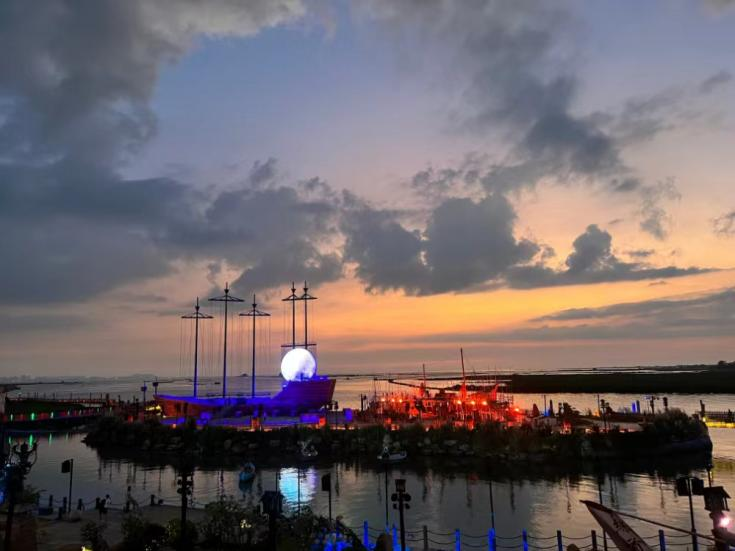 来自北部湾的海风吹拂了千年,如今,合浦汉代文化博物馆依然面朝大海的方向。夜幕降临时,北部湾畔一座“渔港”华灯初上,点亮了“港口”内的雕栏玉砌,这里是合浦县烟楼村海丝首港景区。现代人用音乐、戏剧等方式,重现海上丝绸之路首发港的辉煌,纪念勇敢无畏的祖先。