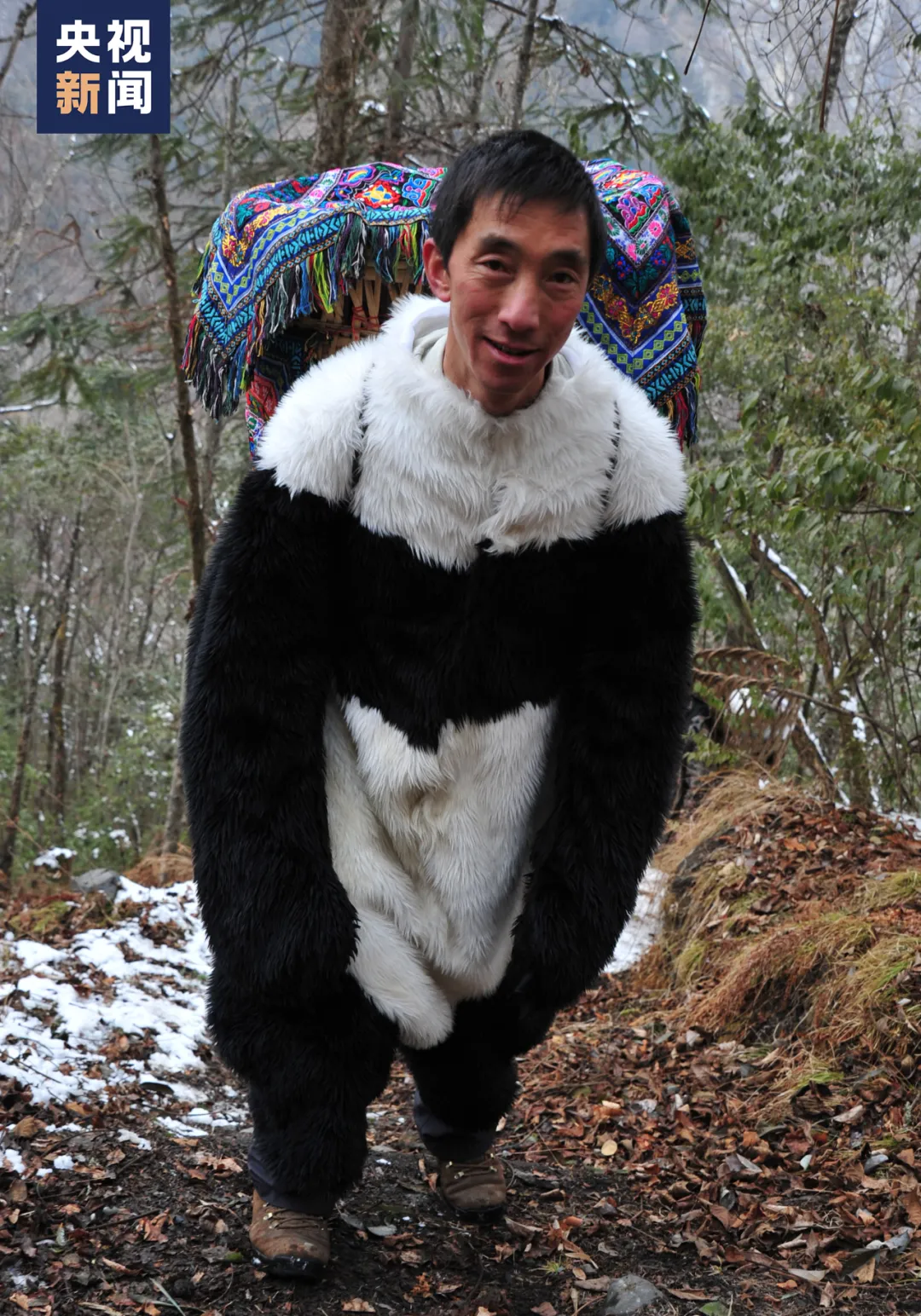 牟仕杰介绍,参与这项工作,必须尽力避免大熊猫对人类产生依赖,为此,他们常常要用到一个“神器”——大熊猫伪装服。每当要与野化培训的大熊猫接触时,他和同事就“全副武装”,衣服上喷洒熊猫尿液或涂抹粪便,让自己更“像”熊猫。