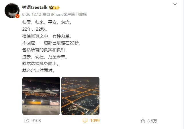 · 回到国内几天后,胡越发了一条报平安的微博。