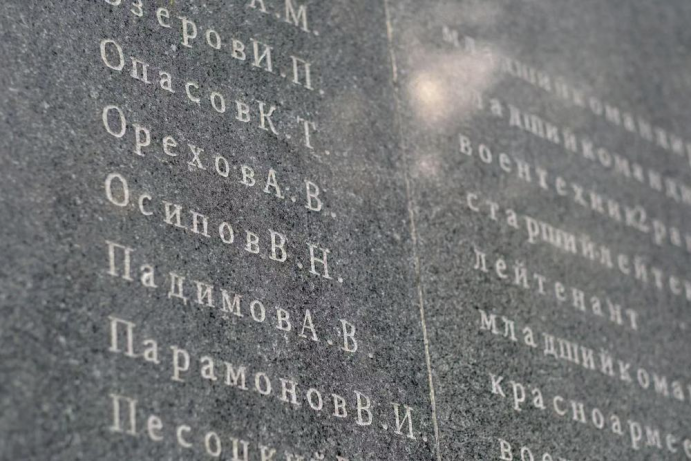4月27日,在南京抗日航空烈士纪念馆拍摄的刻有亚历山大·奥列霍夫名字(左上起第三行)的英烈碑。新华社记者 郑开君 摄