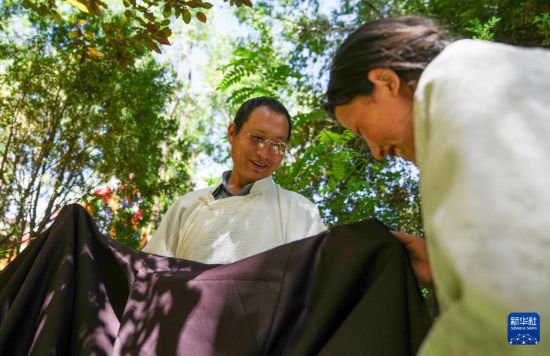 洛桑麦朗在检查做好的藏装(8月15日摄)。