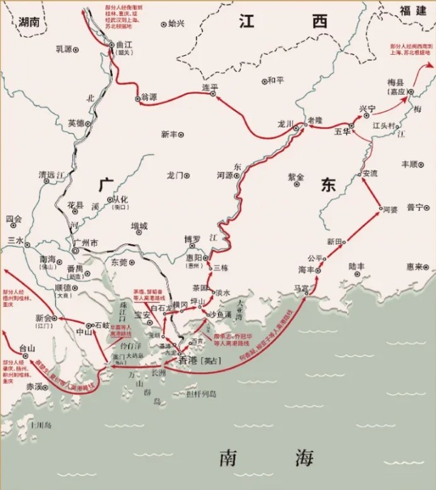 廖承志等据此制定了四条出港转移路线,简称为东线、西线。