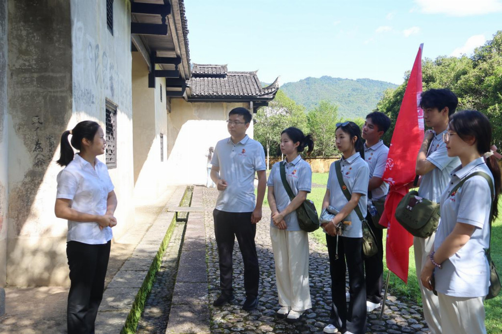 在井冈山市茨坪镇行洲村红军标语遗址,实践团成员认真聆听工作人员讲解,感悟革命历史,体悟信仰力量。面对斑驳土墙上的30 余条珍贵红色标语,虽历经岁月洗礼,此刻却依然熠熠生辉。“实行马克思主义,实行共产主义!”“红军是为劳苦工农谋利益的先锋队!”等标语, 一字一句,传递着穿越时空的磅礴力量,让成员们深受触动与教育。