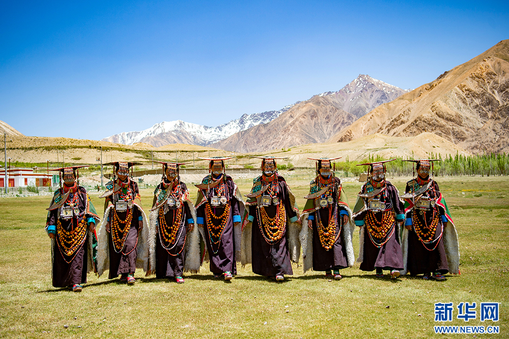 噶尔县群众在展示自治区级非物质文化遗产“噶尔传统服饰”(6月14日摄)。新华网 旦增努布 摄