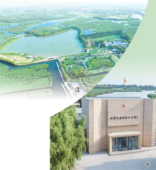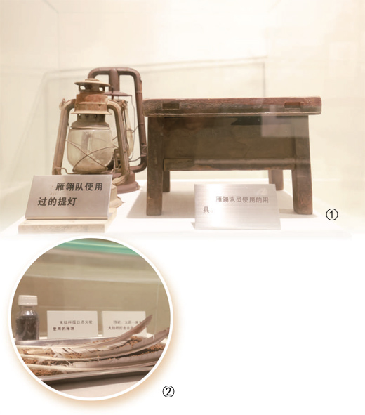 图①:雁翎队使用过的提灯和用具。 图②:“大抬杆”信口点火处使用的雁翎。 图③:白洋淀航拍。 图④:白洋淀雁翎队纪念馆外观。 以上图片均为李兆民摄