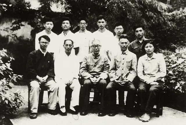 前排左起:叶尚青、诸乐三、潘天寿、陈龙(时任浙江美术学院书记)、陈龙夫人