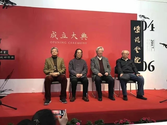 (紫苑书院揭牌仪式,左至右为:薛永年、邵大箴、张立辰、何家英)