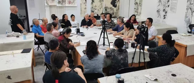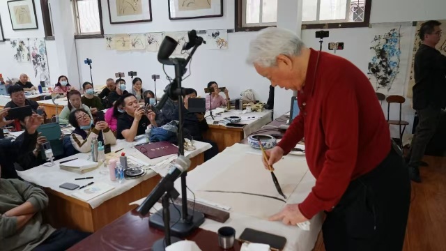 (张立辰先生给学员讲授《中国画的临摹、写生、创作的关系》并做示范)