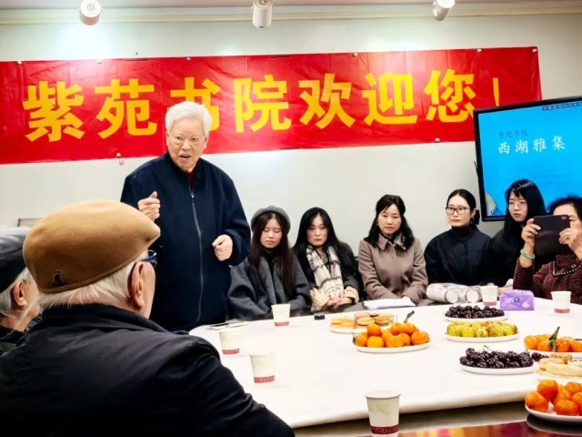 2024年12月24日—26日,时惟寒冬,将迎新岁,在紫苑书院胡萍院长及团队的精心策划下,紫苑书院张立辰、胡萍、郭煌、牟玲一行四人再度南下杭州,慰问紫苑书院部分顾问、导师及张立辰先生的恩师潘天寿、诸乐三、吴茀之、陆维钊、陆抑非诸先生的后人代表。这也是张立辰、胡萍夫妇自2004年率团南下杭州恒庐雅集、2012年率百名师生南下中国美院访师问学、2018年南下杭州“西溪谈艺”之后的又一次人文艺术之旅。这次活动,名为“西湖雅集”。紫苑书院组织的多次南下访学活动,加强了南北艺坛的深度互动和思想交流,已成为南北艺坛佳话。