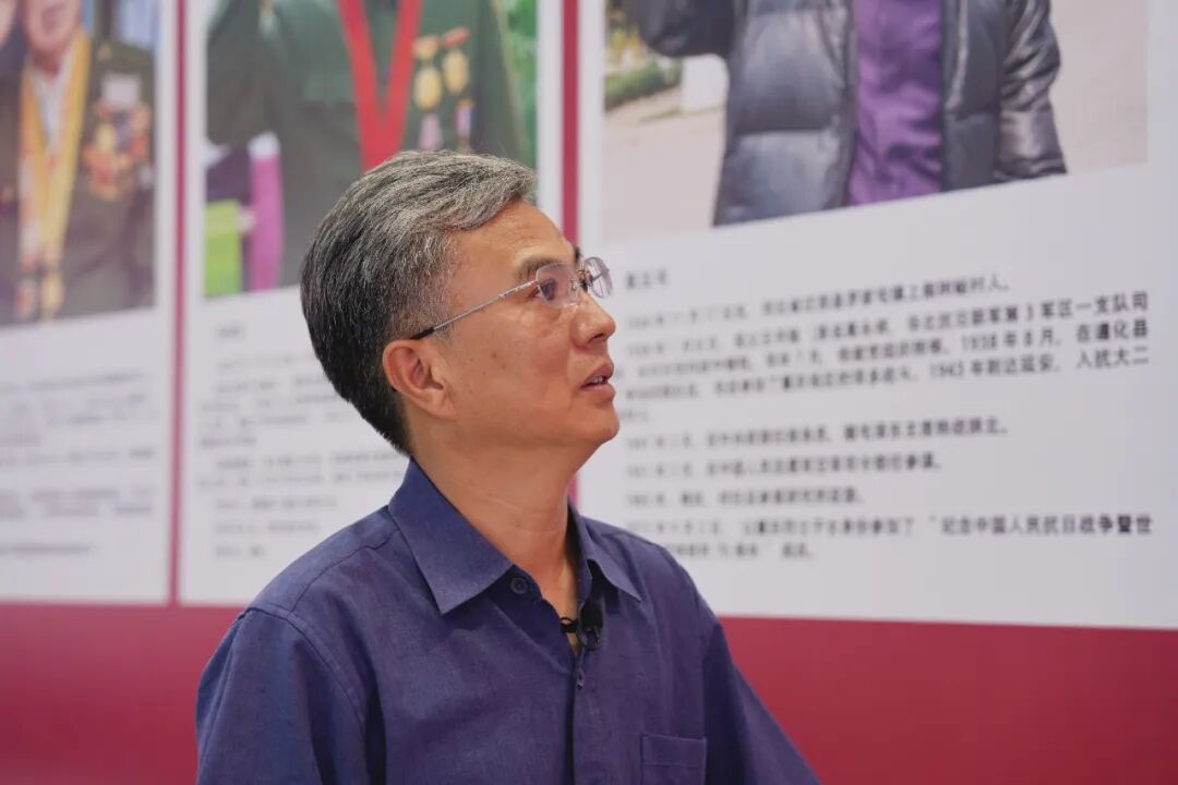 ·2025年8月,在唐山“永不褪色的记忆”摄影展上,戚辉接受记者采访。(环球人物记者 张森绚/摄)