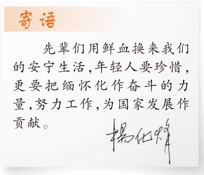 “党和国家给了我们好生活,我们不能只谈享受,要多作贡献。”杨化烽经常用自己的革命经历教育子女和年轻后辈,“遇到困难,不要怕,更不要抱怨,要敢于迎难而上,和平幸福的生活是一代代人拼出来的。”