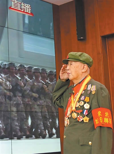 通过电视直播观看了阅兵仪式,95岁的东北抗联老战士王济堂(见图,本报记者郭晓龙摄)心情久久不能平复。