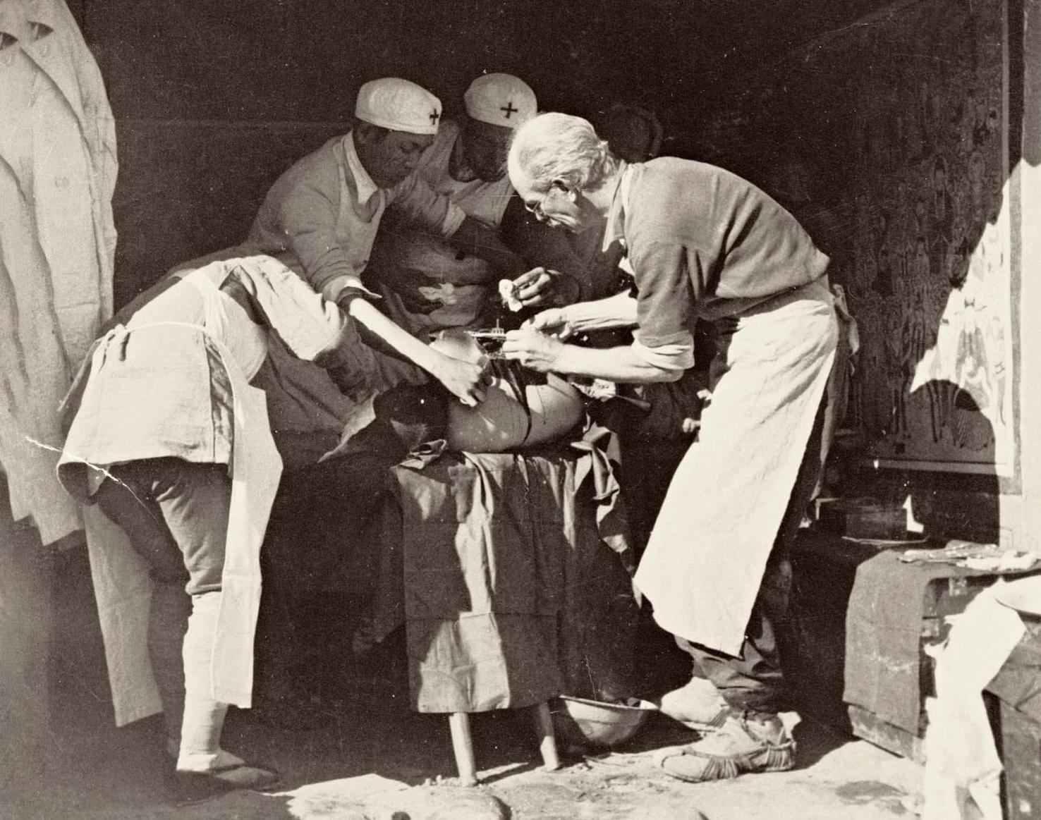 1939年10月,晋察冀抗日根据地,白求恩大夫(右一)在救治伤员。