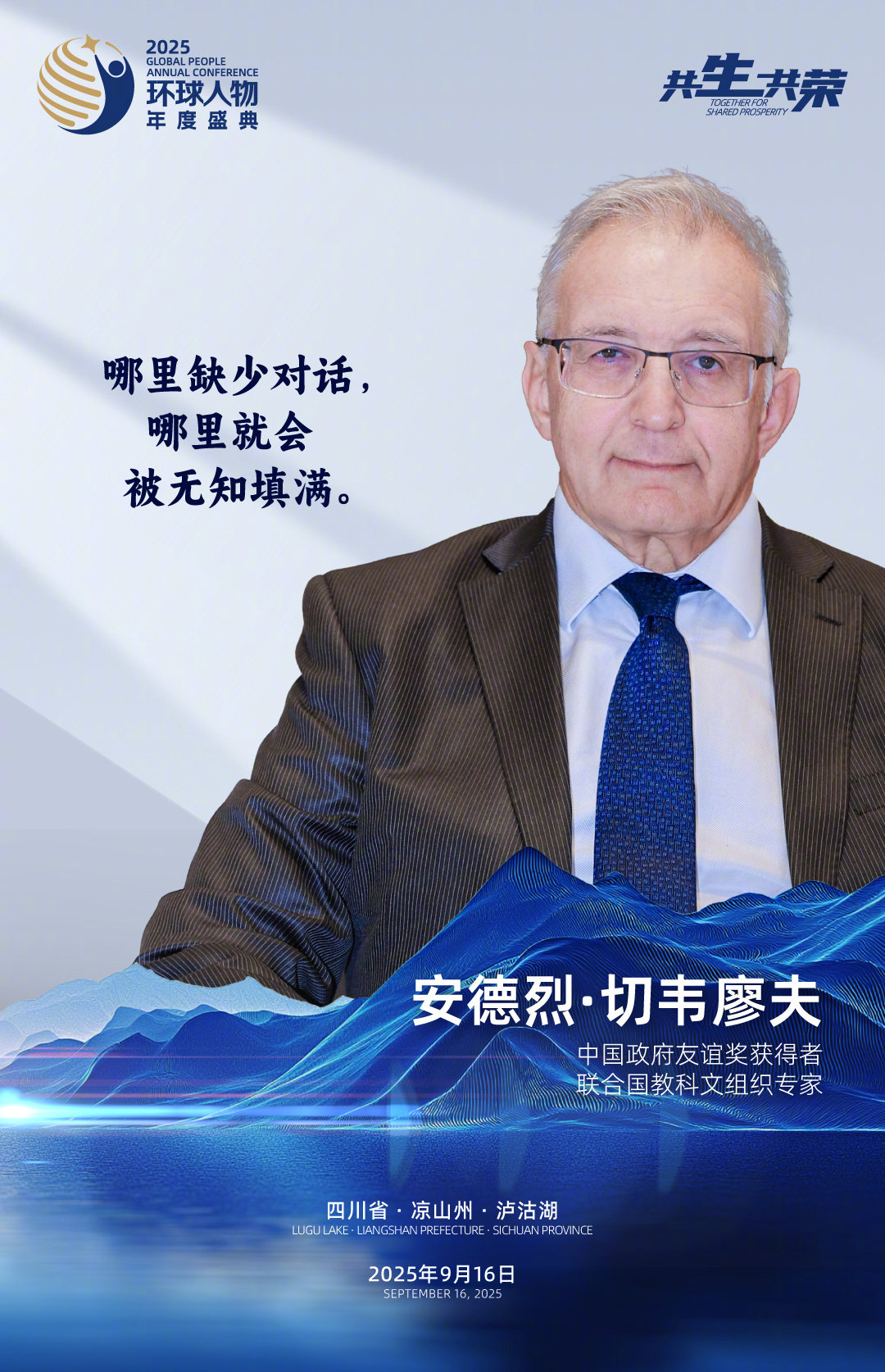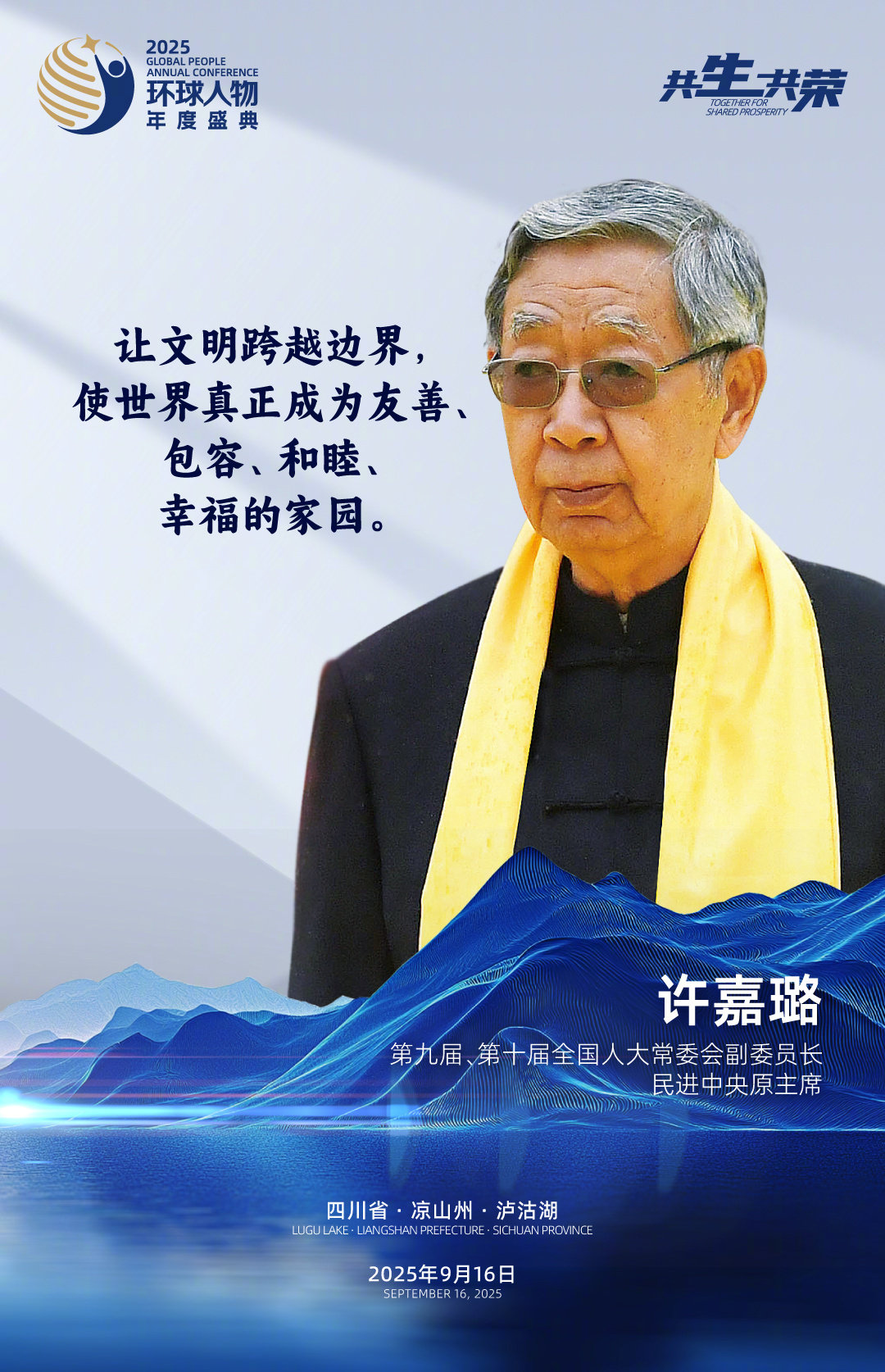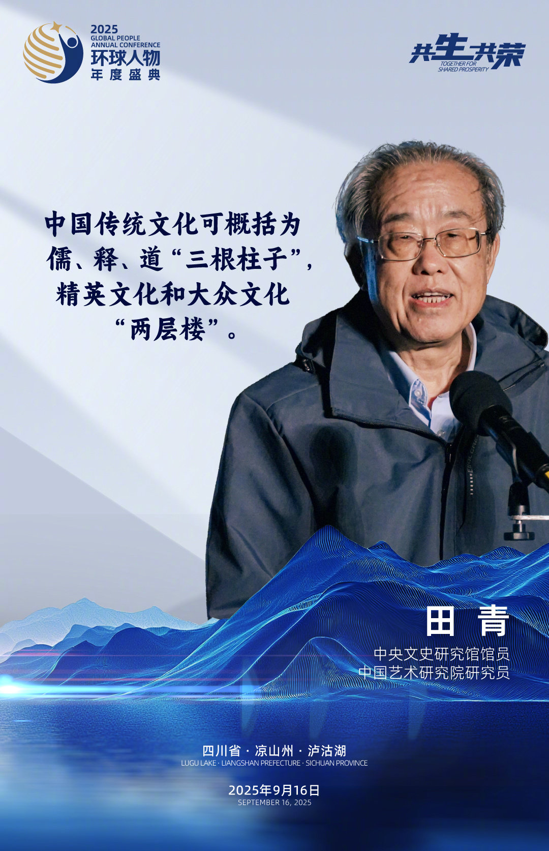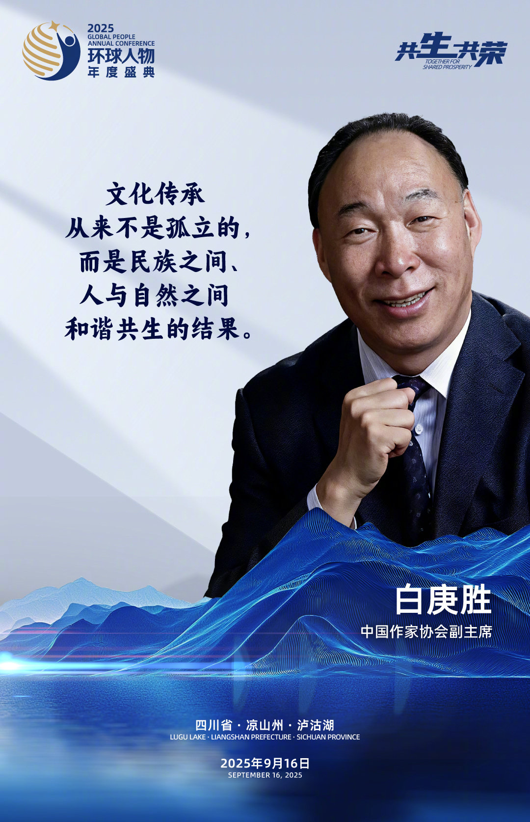 9月16日,“共生·共荣”2025环球人物年度盛典在四川凉山泸沽湖举行。第九届和第十届全国人大常委会副委员长、民进中央原主席许嘉璐,中国作家协会副主席白庚胜,中国国家大剧院院长王宁,中国政府友谊奖获得者、联合国教科文组织专家安德烈·切韦廖夫,中国国家版本馆党委书记、馆长刘成勇,中央文史研究馆馆员、中国艺术研究院研究员田青,中国社会科学院民族文学研究所研究员巴莫曲布嫫,《中华诗典》总主编刘占锋,京剧表演艺术家胡文阁,浙江小百花越剧院副院长兼浙百团团长蔡浙飞,山水盛典文化产业股份有限公司董事长梅帅元,摩梭传统服饰非遗传承人、四川省凉山州摩梭非遗工坊创办人喇建莉进行了分享或书面发言,与我们畅谈文化传承与文明交流互鉴的故事、感悟和思考。
