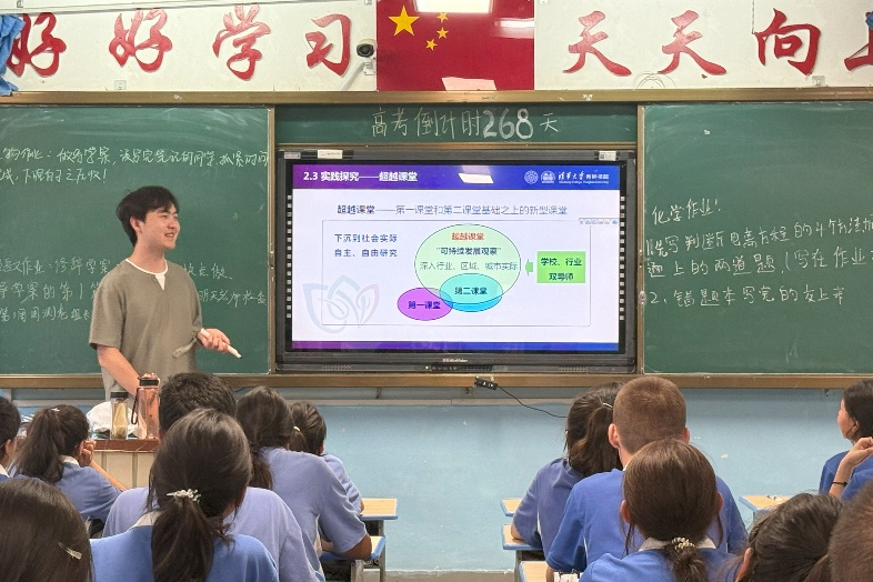 在喀什市第四中学,实践支队开展了“可持续·未来”系列宣讲。实践支队师生面向高三学子进行励学分享,讲述高中学习方法,介绍学科交叉融合的教育改革,推广可持续发展理念,讲解文化遗产保护、生态文化、生态文明建设等重要概念。