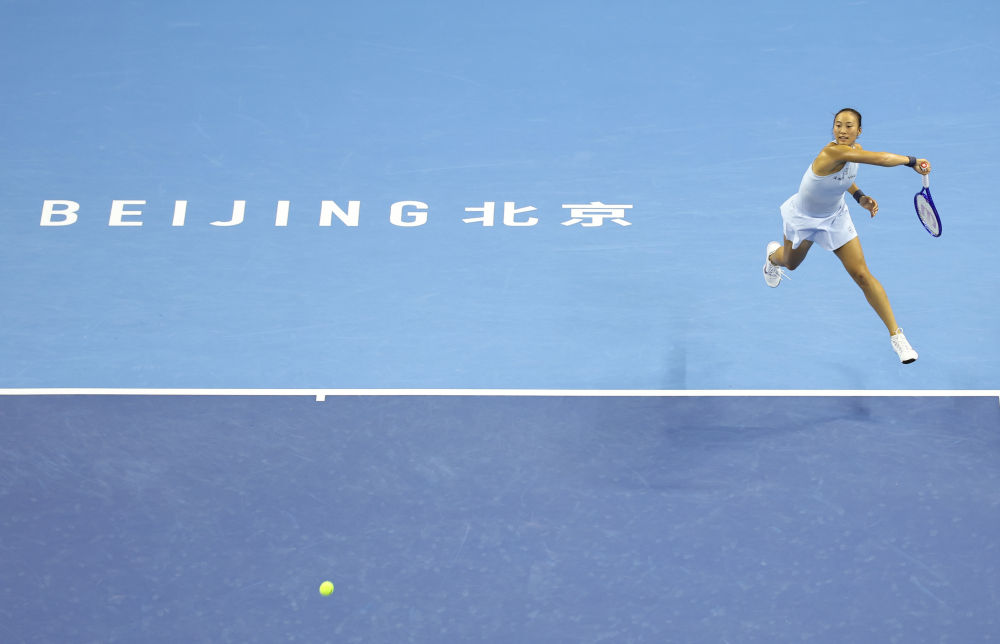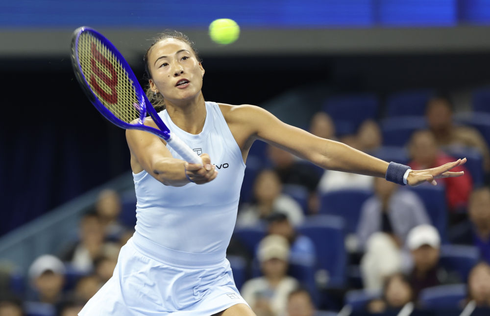 9月27日,郑钦文在比赛中。新华社记者 白雪飞 摄