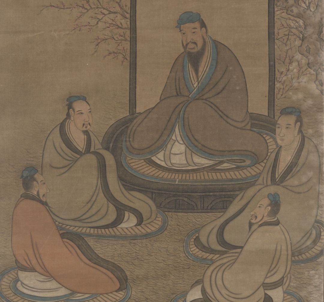 “孔子游乎缁帏之林,休坐乎杏坛之上,弟子读书,孔子弦歌鼓琴。”