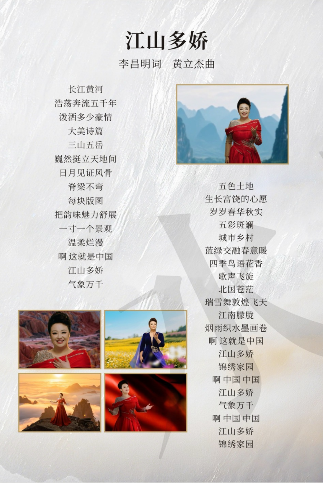 MV作品《江山多娇》由李昌明作词、黄立杰作曲、博雅演唱、郑浩担纲导演,中国少数民族声乐学会担任指导单位。作品以艺术之笔描绘山河壮丽,以赤子之心咏叹家国情怀,大气豪迈、气势磅礴地展现了一个波澜壮阔、气象万千的精彩中国。