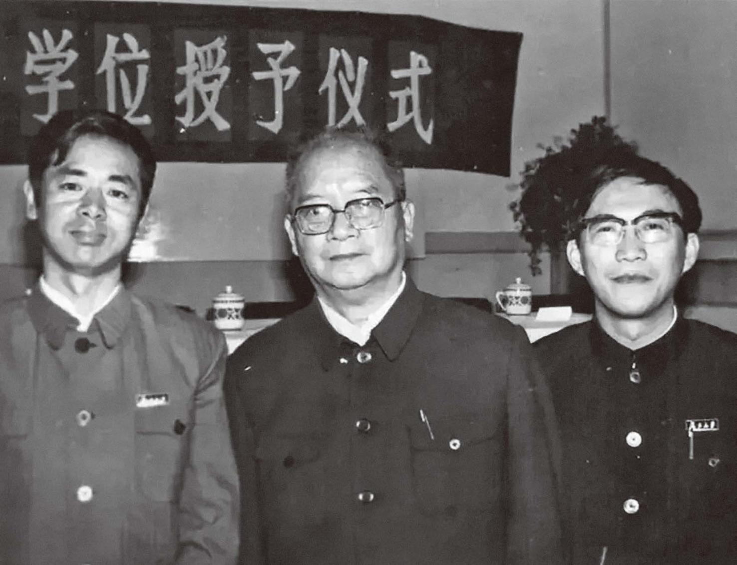 1983年,葛剑雄在复旦大学博士授予仪式上。左起:周振鹤、谭其骧、葛剑雄。(受访者供图)