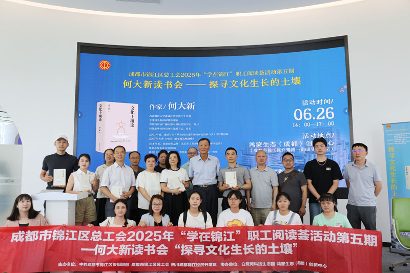 读书分享,浇灌“文化根系”。同样在6月,一场读书会在白鹭湾鸿蒙智能展厅举行。西南财经大学博士生导师、四川大学文学院兼职教授何大新带领职工代表,开启了一场“探寻文化生长的土壤”之旅。