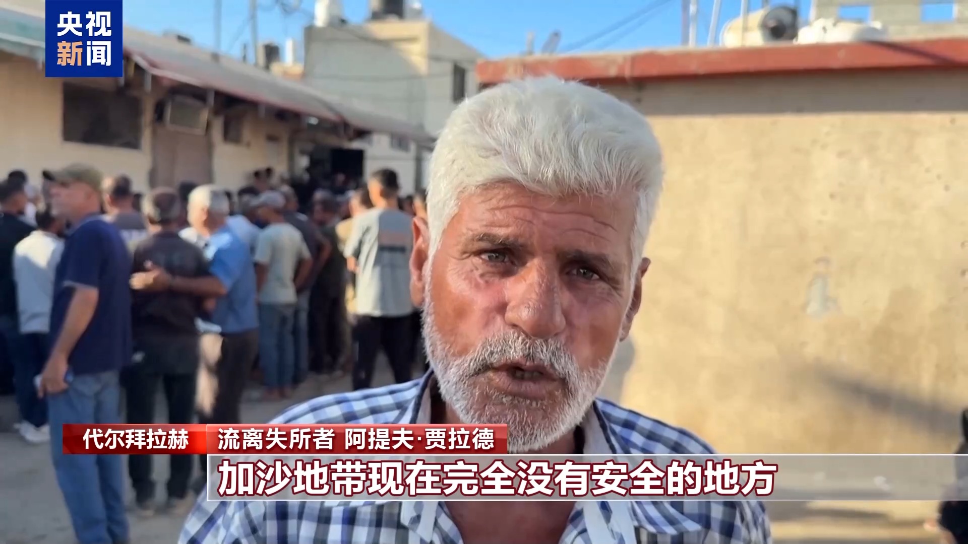 代尔拜拉赫的流离失所者 阿提夫·贾拉德:由于拜特拉希亚被完全摧毁,我们来到了这里。以军通知让我们前往安全地方,特别是代尔拜拉赫。但很不幸,以色列的战争机器只会轰炸无辜的生命。这些人没有任何武器,我不得不非常明确地说,加沙地带现在完全没有安全的地方。