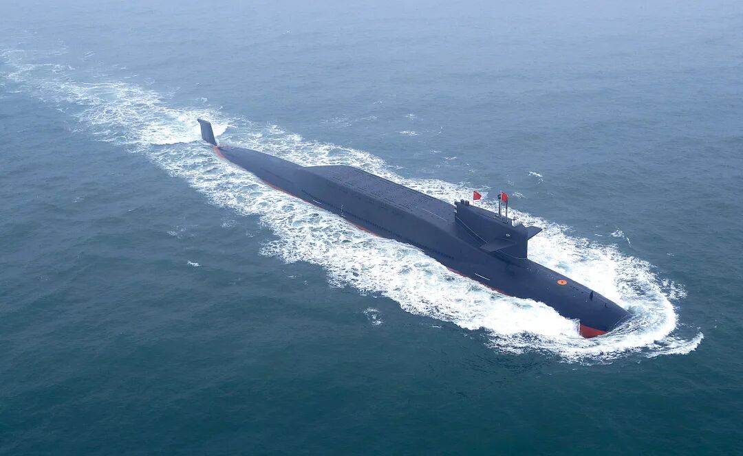 ·2019年4月23日,庆祝中国人民解放军海军成立70周年海上阅兵活动在青岛附近海空域举行。这是中国某新型核潜艇。(新华社)