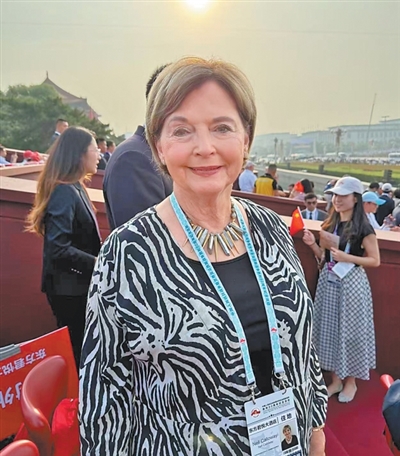 这是嘉兰惠第二次受邀登上天安门观礼台。10年前,她曾参加纪念中国人民抗日战争暨世界反法西斯战争胜利70周年大会。再次出席纪念活动,她心情激动。“阅兵规模宏大,参加分列式的方队整齐而庄重,令人心潮澎湃。”尤其是看到现代化的装备时,她不禁想起外祖父当年写下的那段文字——1937年中国空军仅有91架能飞的飞机。回忆起陈纳德将军亲历的那段历史,嘉兰惠说:“外祖父始终相信中国人民在抗战中展现的坚韧与力量,正是这种精神,让他选择与中国人民站在一起。这份精神遗产不仅属于中国,也属于世界。”