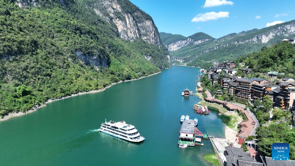 An aerial drone photo taken on Oct. 9, 2025 shows the scenery of Gongtan Ancient Town in Youyang Tujia and Miao Autonomous County, southwest China's Chongqing Municipality. (Photo by Qiu Hongbin/Xinhua)